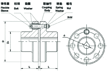 彈性套柱銷聯(lián)軸器的許用相對位移: 徑向位移:0.2~0.6mm 角位移:0°30′~1°30′
