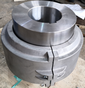 蛇形彈簧聯軸器其主要結構是由兩個半聯軸節,兩個半外罩,兩個密封圈及蛇形彈簧片組成。運轉時,是靠主動端齒面對蛇簧的軸向作用力帶動從動端,來傳遞扭矩,如此在很大程度上避免了共振現象發生,且簧片在傳遞扭矩時所產生的彈性變量,使機械系統能獲得較好的減振效果,其平均減振率達36%以上。它是靠蛇簧嵌入兩半聯軸節的齒槽內來傳遞扭矩,聯軸器以蛇形彈簧片嵌入兩個半聯軸節的齒槽內,來實現主動軸與從動軸的鏈接。