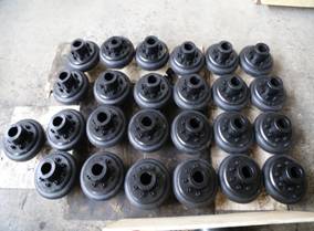 輪胎聯軸器分為凸型輪胎聯軸器和凹型輪胎聯軸器兩大類,凸型輪胎聯軸器又分為帶骨架整體式輪胎聯軸器、無骨整體式輪胎聯軸器和徑向切口式輪胎聯軸器三種。輪胎環內側用硫化方法與鋼質骨架粘接成一體,骨架上的螺栓孔處焊有螺母。