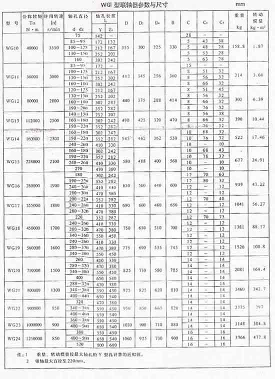WG I型鼓形齒式聯軸器基本參數和主要尺寸
