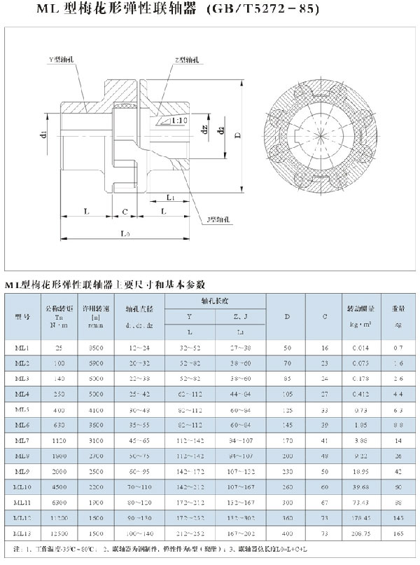 LM(ML)系列梅花形彈性聯(lián)軸器(GB5272-2002)