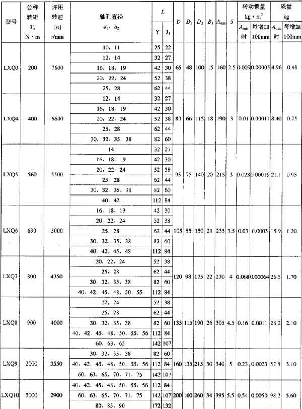 LXQ接中間軸球鉸型星形彈性聯軸器基本性能參數和主要尺寸