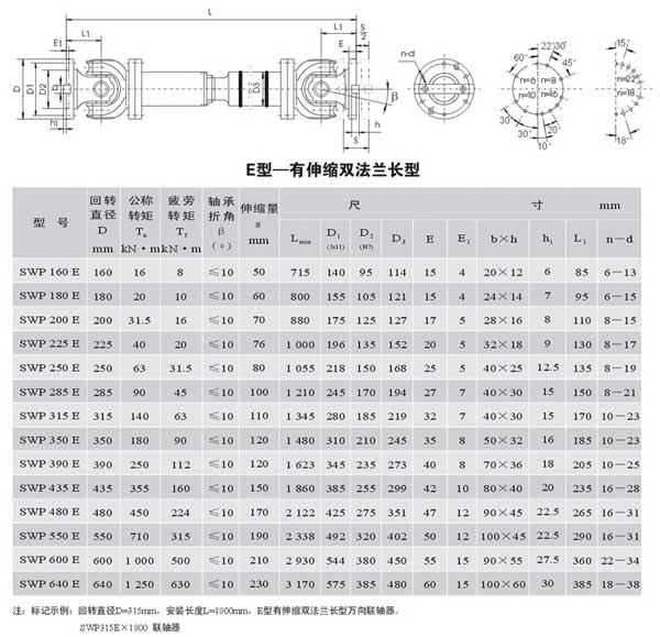 萬向聯軸器,E型有伸縮法蘭長型萬向聯軸器......